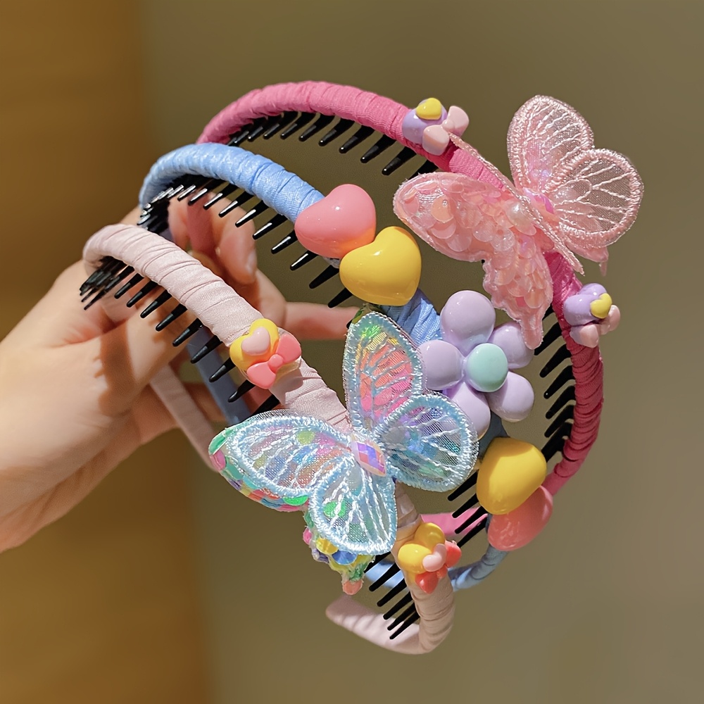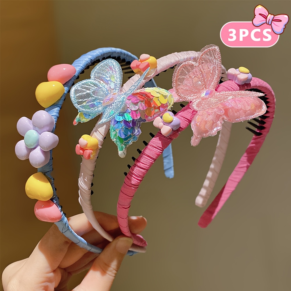 Add a playful touch to any hairstyle with this 3-piece set of colorful butterfly hair bands. Made from durable resin